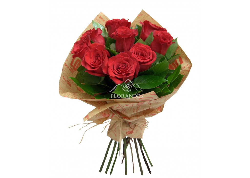 Buchet de trandafiri rosii, cu o nota de prospetime si romantism, cadoul perfect pentru Valentine's Day. Buchetul este compus din 9 trandafiri rosii Freedom, 1 legatura crengute de salal si ziar.